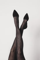 Naisten 20 denierin vahvuinen musta sukkahousut, jossa mustia pilkkuja. 20den sukkahousu on hyvä valinta esimerkiksi juhliin. Pakkaus sisältää yhdet sukkahousut.