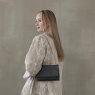 Välke laukku sulkeutuu kätevästi nepparilla ja sen sisällä on kaksi tilavaa osiota, joita erottaa kätevä pieni tasku. Välke laukku on monikäyttöinen, sen ajaton tyyli sopii täydellisesti niin rentoihin kuin juhlaviinkin asuihin. Lisää eleganssia laukkuun saat vaihtamalla mukana tulevan, lyhyemmän ketjuhihnan nahkahihnan tilalle. Ilman hihnaa voit käyttää Välkettä myös clutch-laukkuna.