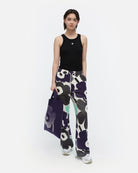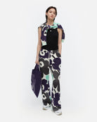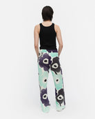 Varret-collegehousuissa on rento istuvuus ja suorat lahkeet. Housuissa on Unikko-kuosi, sivusaumataskut ja kuminauhavyötärö, jonka sisällä kulkee solmimisnauhat.
