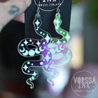 Nämä persoonalliset käärmeen muotoiset korvikset ovat erittäin näyttävät ja uniikit! Kauniista holo-akryylista valmistetut korvakorut on koristeltu näyttävin kaiverruksin. Isot korvakorut ovat erittäin näyttävät, mutta samalla kevyet ja mukavat käyttää.