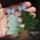 Kuusipuu -korvakorut ovat molemmin puolin ihanaa ja näyttävää glitteriä.