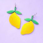 Puiset sitruuna korvakorut. Korvikset ovat peilikuvat, ja kuvitus on painettu molemmille puolille.