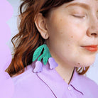 Puiset kissankello korvakorut. Korvikset ovat peilikuvat, ja kuvitus on painettu molemmille puolille.