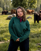 Suunniteltu naisten vartalonmittataulukon avulla. Paita on paksua, laadukasta neulosta, joka on päällä ihanan tuntuinen. Paidassa on hieman normaalia leveämpi pääntien resori, joka antaa paidalle viimeistellyn ilmeen. Sävynä upea tummanvihreä – täydellinen valinta saapuvaan syksyyn.