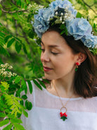Käsin tehty. Polymeerimassa ja lasihelmet. Metalliosat ovat allergiaystävällistä kirurginterästä (nikkelitön) tai allergiaystävällistä 18K kullattua kirurginterästä (nikkelitön). Kaikki osat kestävät vettä.