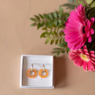 Elea korvakorut on punottu käsin upeista lasikristallihelmistä. punonnassa on käytetty kuparilankaa, joka on päällystetty hopealla sekä langan värillä.