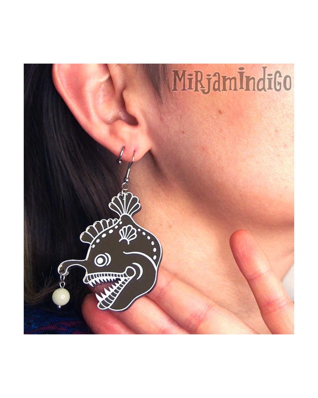 Mirjamindigo harvemmin toteuttaa akryylisiä tuotteita, mutta tämä syvänmerensukeltaja lähestulkoon vaati materiaalikseen heijastavaa peiliakryyliä. Mystisen violetti tai merellisen turkoosi terävähampainen kyhmylyhtykrotti kantaa eväruoto-ongessaan pimeässä hohtavaa helmeä, lieneekö näiden avulla mahdollista myös suunnistaa hämärtyvissä illoissa?