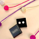 Acrylic and surgical steel are used to make jewelry. Surgical steel is suitable for people with sensitive skin and allergies (e.g. those with allergies to silver and gold). The acrylic parts are designed and cut with a laser machine at Buton's workshop in Helsinki. Assembly and packaging of the jewelry also takes place in the same workshop. The jewelry is delivered attached to a wooden stand in a beautiful cotton bag.