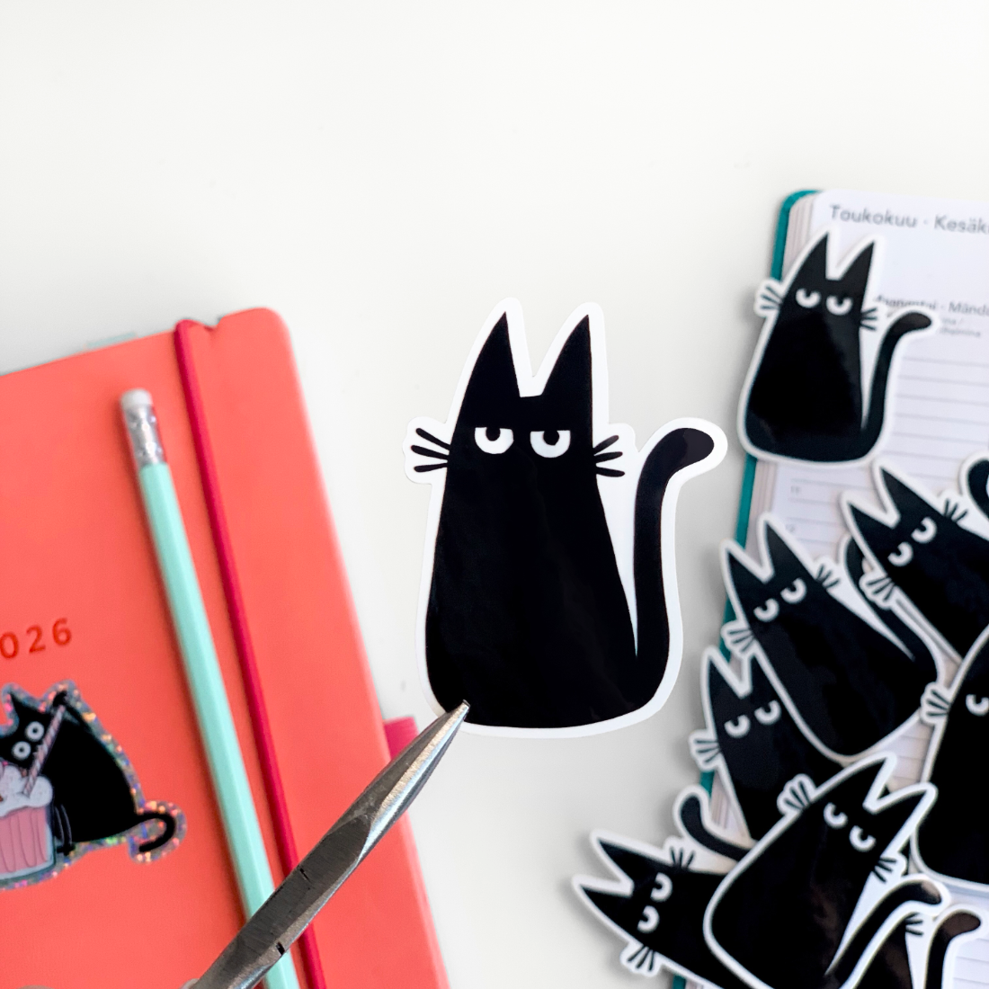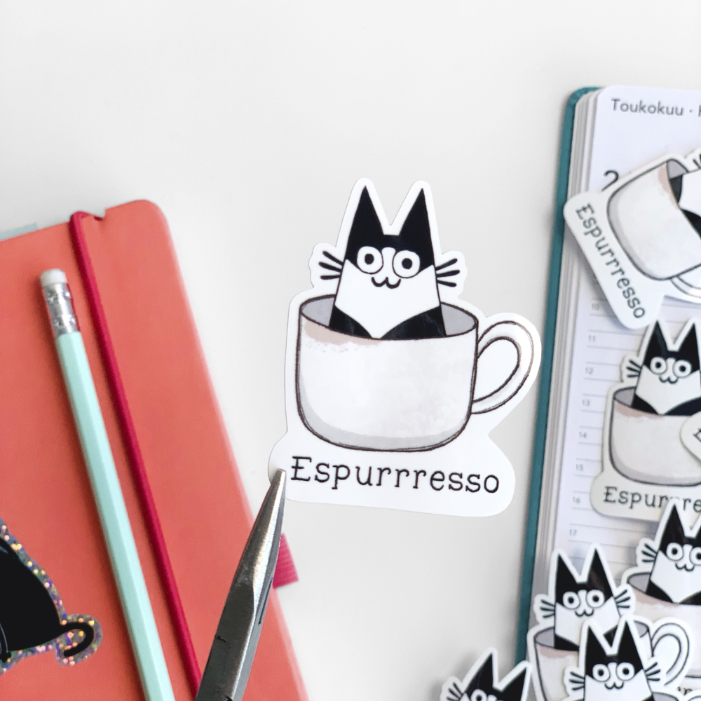 Vedenpitävä ja pesukoneen kestävän tarran voit liimata vaikka juomapullon kylkeen. Tai ehkäpä koristelet puhelimen kuoren tai läppärin suloisella kissalla?